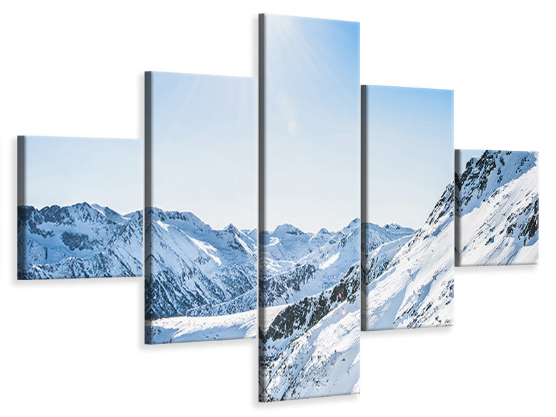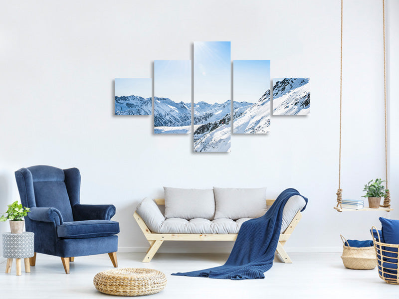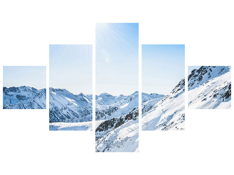 Billede på lærred 5-delt Mountain Panorama In Snow