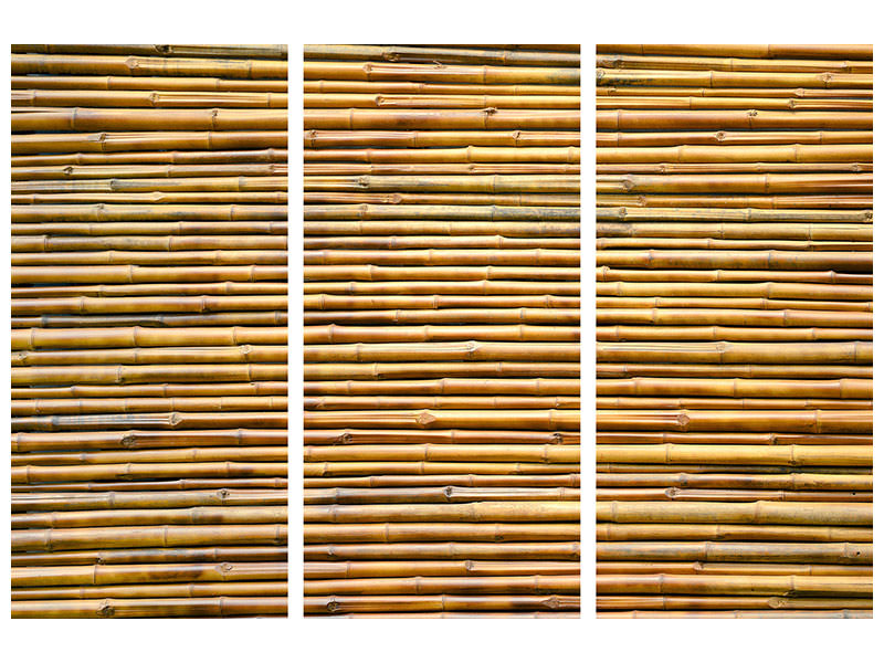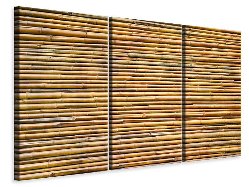 Tableau sur Toile en 3 parties Mur de bambou horizontal