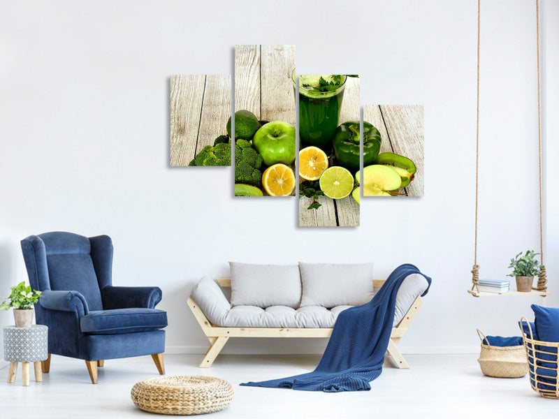 Stampa su tela 4 pezzi moderno Frullato di ingredienti verdi