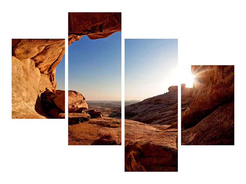 Stampa su tela 4 pezzi moderno Tramonto di fronte alla caverna