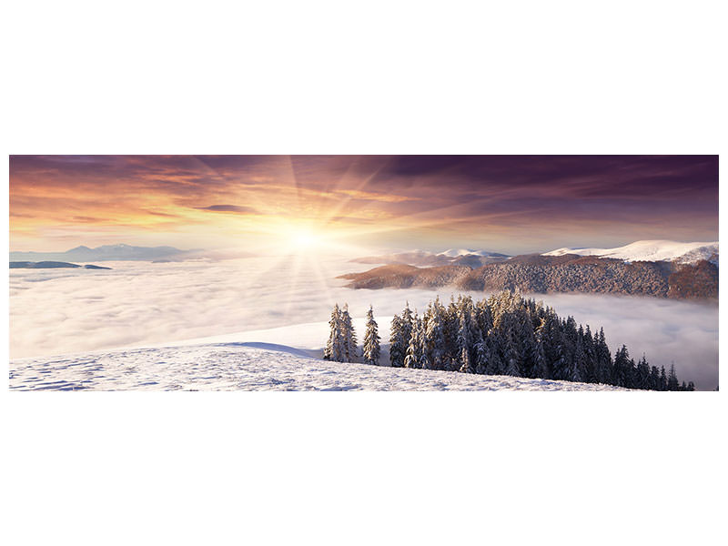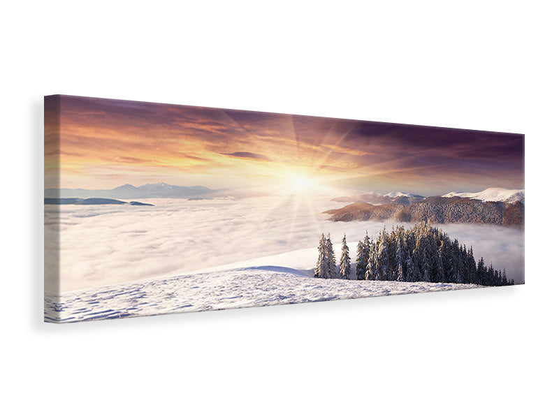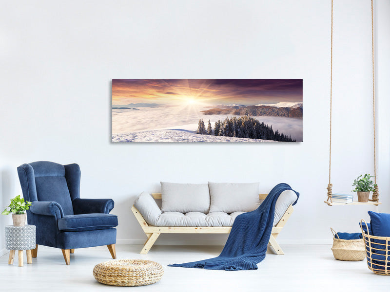 Canvas Schilderij panaoramaformaat Sunrise Winter Landscape